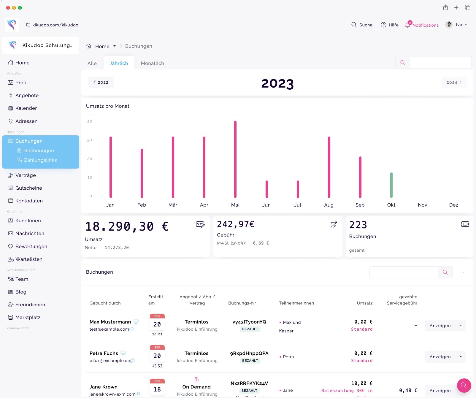kikudoo ist die All-in-one Lösung für dich: deine eigene Webseite, eine Kurs- und TeilnehmerInnenverwaltung sowie ein komplettes Buchungs- und Bezahlsystem. Alles auf einer Seite und alles genau wie du es brauchst.